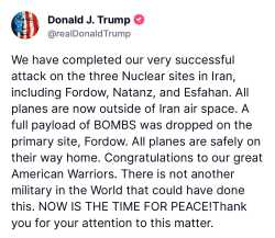 Meanwhile, Trump proclaimed that Iran’s nuclear facilities had been “completely and totally obliterated.” Hmmm. Satellite images. More here. No radioactive contamination was found at the site of the bombings. Trump lied. Israel hastened to support Trump’s statement.