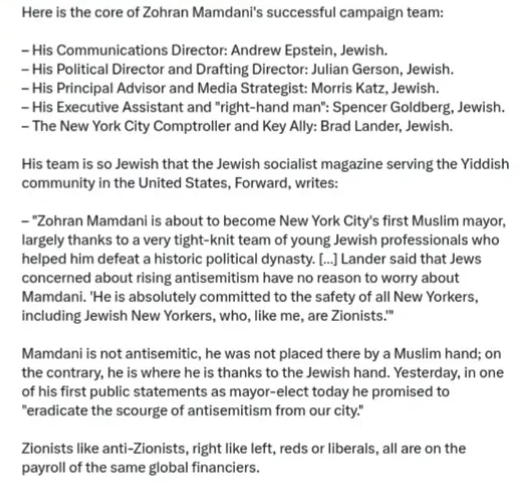 New York jews don’t seem to be alarmed at Mamdani’s election, but Fox News reports the jews are extremely anxious. Don’t they know Mamdani was financed by Soros?